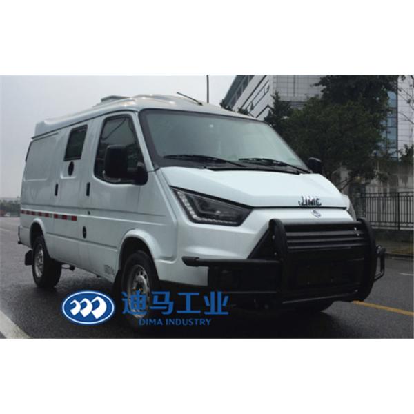 Dima MT5047XYCAV2 bullet-proof cash in transit vehicle is a restructured with JMC Transit special reinforced chassis, which is suitable for armed escort of cash, marketable securities, jewelry and other valuables. Among them, the cockpit and escort cabin are bulletproof on all four sides. The cockpit is provided with bill transfer holes, the escort cabin has shooting holes on both sides, and is equipped with a color dual camera monitoring system.